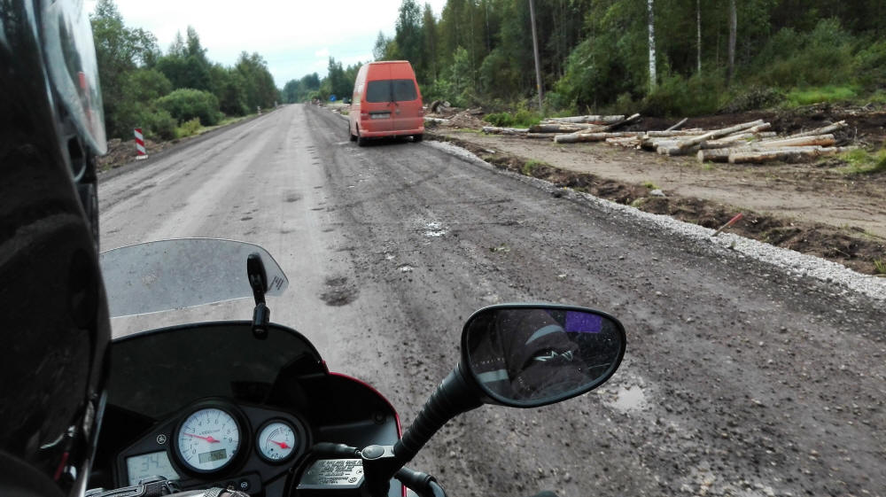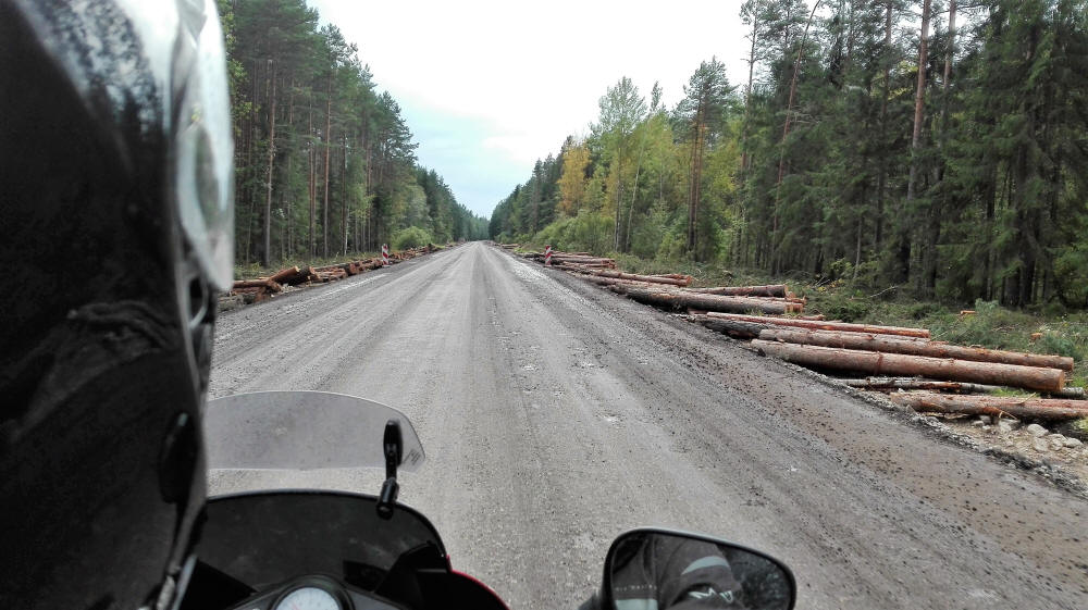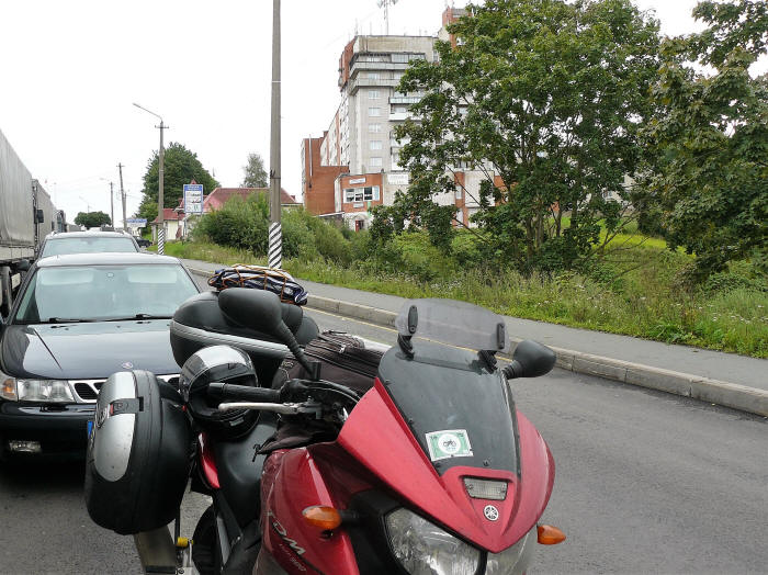 A decir verdad, teníamos ganas de salir de Rusia y volver a la civilización..., sí, a la civilización occidental al menos. Bueno, sigamos con la vuelta, 150 km. separan San Petersburgo de Narva la frontera con Estonia, lugar pensado para la salida de Rusia. La carretera posiblemente la mejor de las que hayamos hecho por el país de los Urales, buen asfalto, ancha, poco tráfico, alguna curva y algún pedazo de bosque...