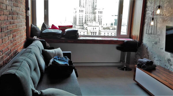 Necesitábamos una ciudad grande donde poder hacer colada, y tenia que ser un apartamento con lavadora, así que Varsovia venia al pelo, en primer lugar el apartamento que reservamos por Booking como todos los anteriores, un apartamento genial todo nuevo o bien cuidado, muy limpio y con lavadora...!!! además se encontraba en el último piso 15º...!!! de un edificio del antiguo régimen, ya se pueden suponer las vistas desde esa altura...
