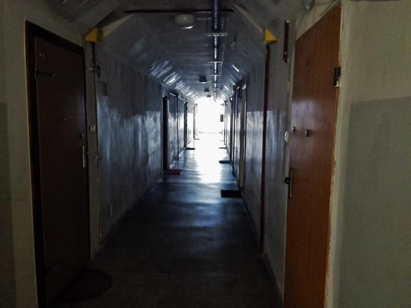 El último piso del edificio central de la fotografía y uno de los pasillos que conducen al apartamento, el resto de puertas son viviendas...