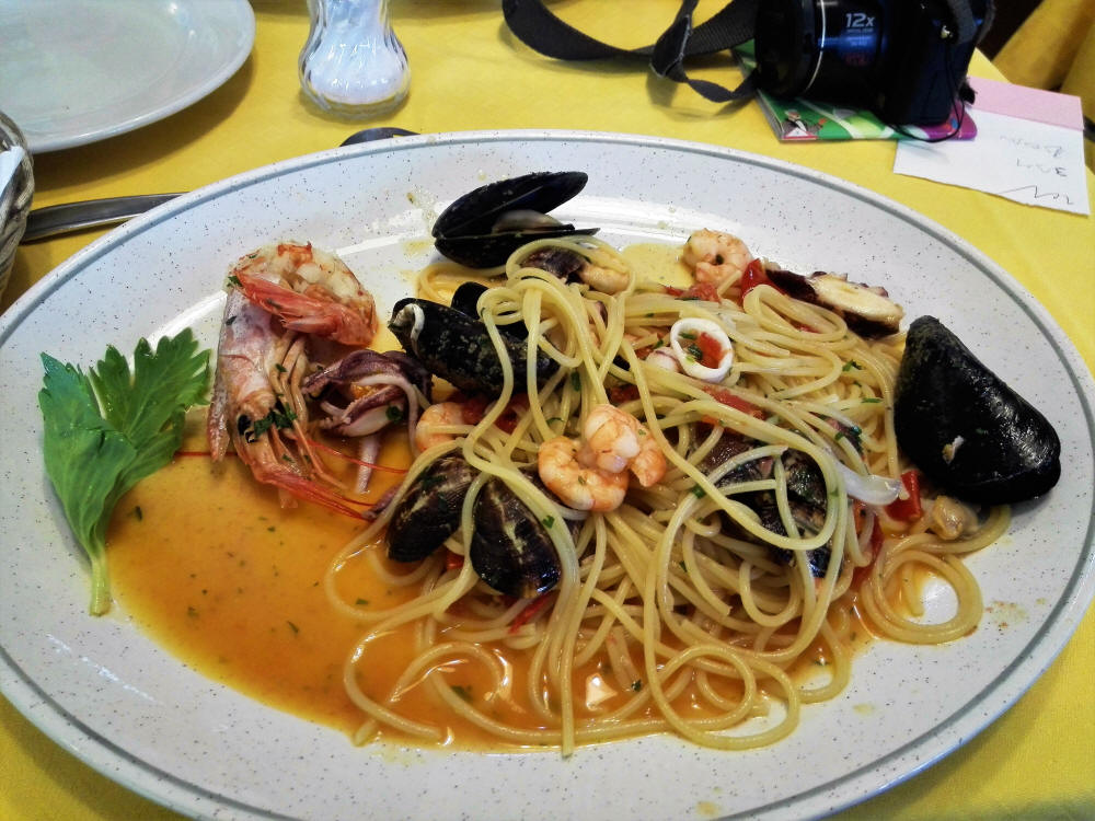 Se hace la hora de comer y damos buena cuenta de unos Spaguetti a lo Scoglio...