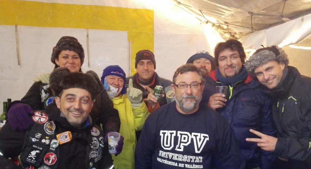 Dado el estado de las carreteras no se puede salir, incluso mover la moto para salir del "plateau" tiene sus riesgos, ni mucho menos hacer turismo por los alrededores. A que engañarse, el ambiente dista mucho de parecerse al del año pasado, los españoles dispersos y sin hoguera, el cielo nublado, la previsión para ese día era de posible nevada. Y lo peor la que había para el día siguiente, día de la vuelta..., pienso en ese día y la salida y como será la llegada hasta Millau pasando por alturas de más de 800 m.