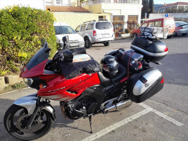 El día siguiente se despertó con una fria y lluviosa mañana, me puse los chubasqueros para no calarme y comencé el ascenso a la autopista a 888 m. de altitud, era domino así que el tráfico más bien escaso y lo que es bueno para algunas cosas es malo para otras, a partir de cierta altura 600 m. la nieve y el hielo bordeaban y amenazaban claramente con adentrarse a la carretera, y sin coches que hicieran caminito se complicaba la cosa, las rotondas con los pies por el suelo y por fin llego a la autopista, lluvia helada y helada la carretera, algunos tramos arrastrando los pies..., un sin vivir vaya, que hicieron muy largos aquellos 150 km. hasta que me acerqué a la costa donde me recibirían los vientos del temporal, todo se normalizó al entrar en España como era de esperar, la temperatura subió considerablemente, ya no llovía aunque no se manifestara el sol, y entre autopista si y autopista no, llegué a casa...