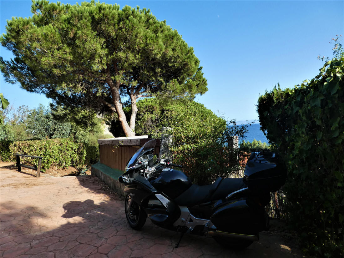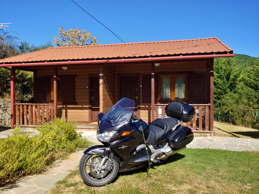 Mientras yo esperaba en la moto al cuidado de los bártulos Marisa estaba en la cola para que nos dieran el bungalow