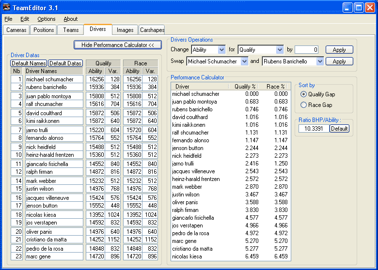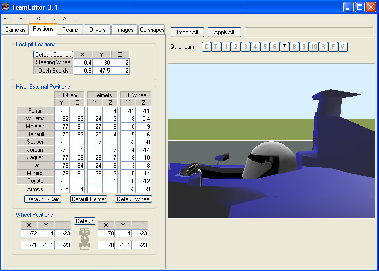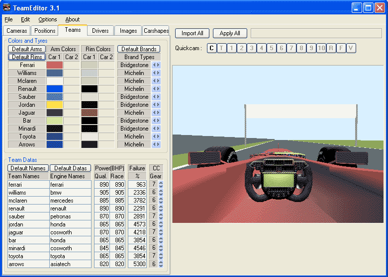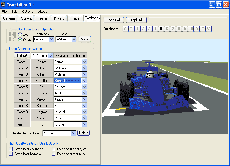 The next image shows the TeamEditor. You can load all available carshapes in your cars.wad. So