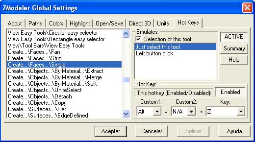 For example I have set up for the tool Create -> Faces ->Single the hot key Alt + Z (note that by default this tool haven’t assigned any hotkey).