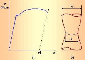 ![]() Figura 2.10. Ductilidad dada por: a) alargamiento de rotura y b) estricción. |