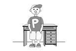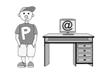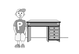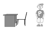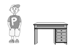Peter se coloca delante del escritorio.Peter steht vor dem Schreibtisch.