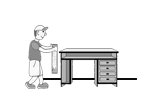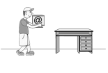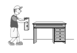 Peter coloca una lámpara junto al escritorio.Die Stehlampe steht neben dem Schreibtisch.