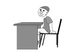 Peter se sienta en el escritorio.Peter sitzt am Schreibtisch.