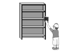 Peter coloca un libro en la estantería.Das Buch steht im Regal.
