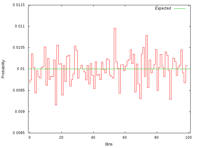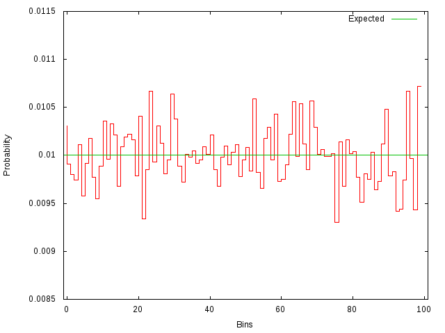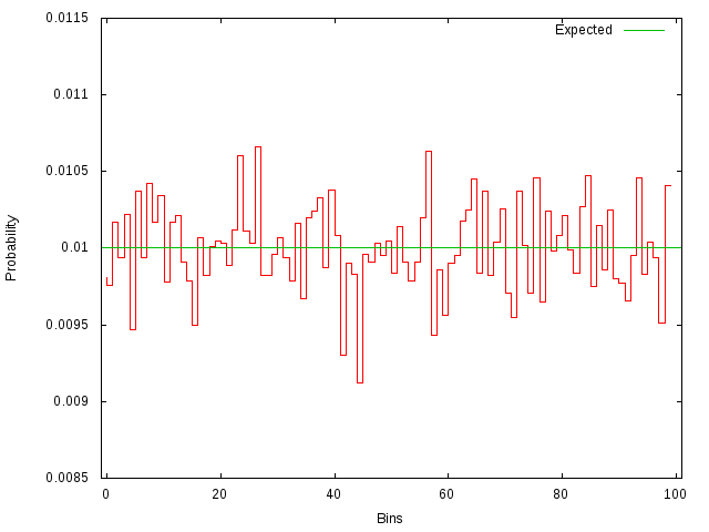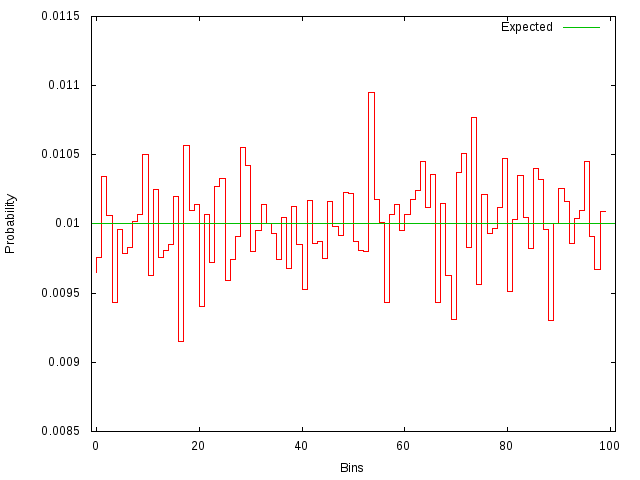 Chi2 test 99% confidence of being a uniform.