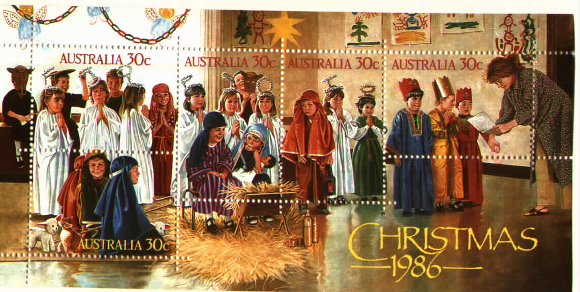 | 1.986 | Au1050 | 60 c | Angels, Representation by children | 1.986 | Au1051 | ms | Miniature Sheet (5 x 30 c) (#) |