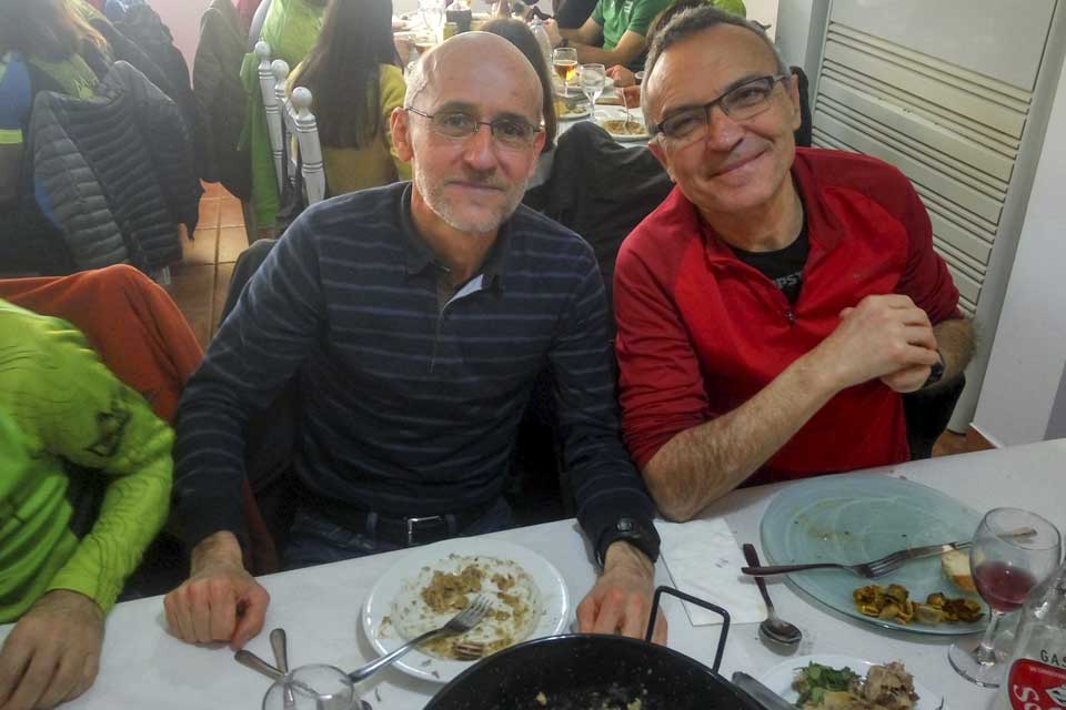 Menú CSI: Entrantes por el Parking del Plà d'Estivella, Ensalada de romeros del Barranc d'Alcalá, paella con el mejor arroz del Barranc de Linares y de postre fruta de Ronda, discurso de JMaría como las rutas (Dos horitas cortas y lentas) y fuegos artificiales de buen rollo y risas "a poalaes"...